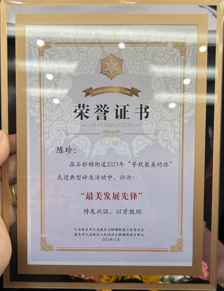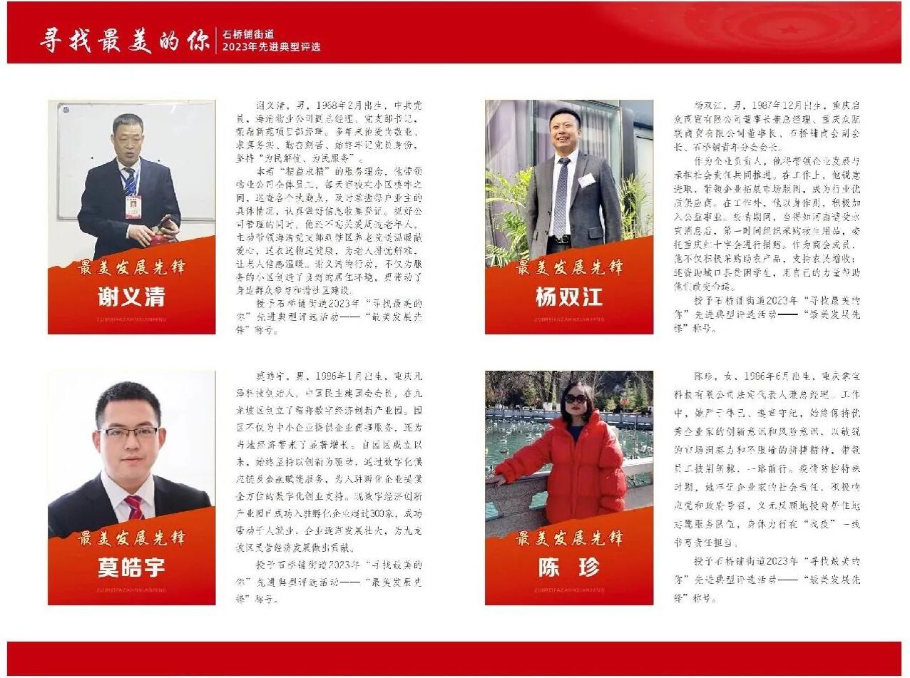 重庆市九龙坡区石桥铺街道2023年“寻找最美的你”先进典型评选活动中攀宝科技荣获“最美发展先锋“